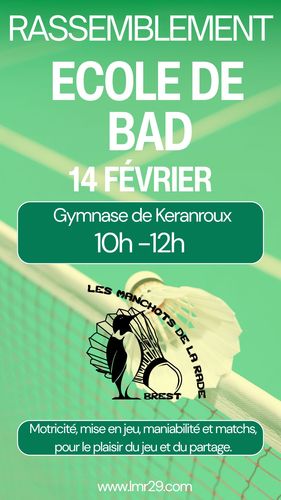 14 février : Regroupement Ecole de bad -Inscriptions jusqu'au 12 février