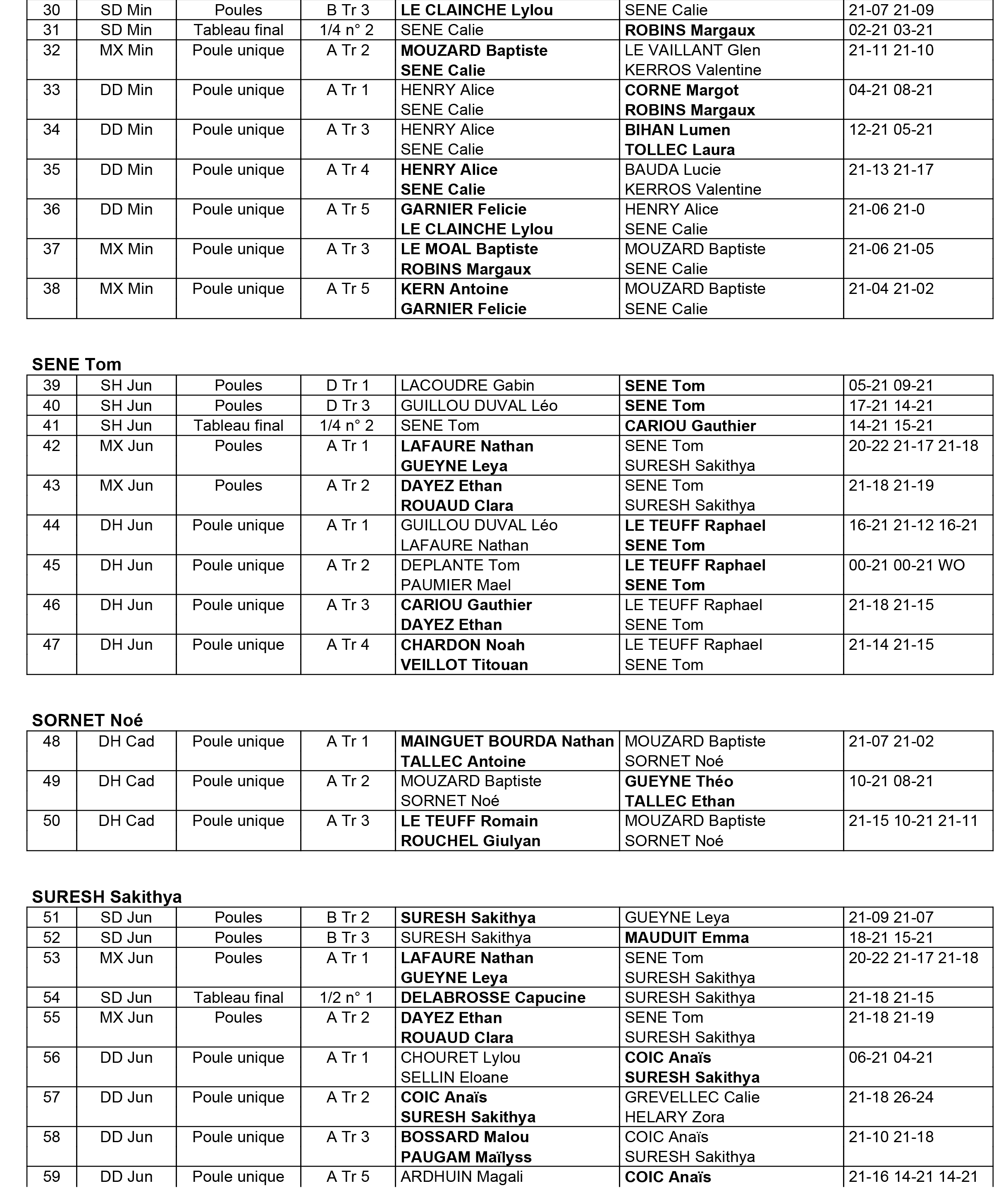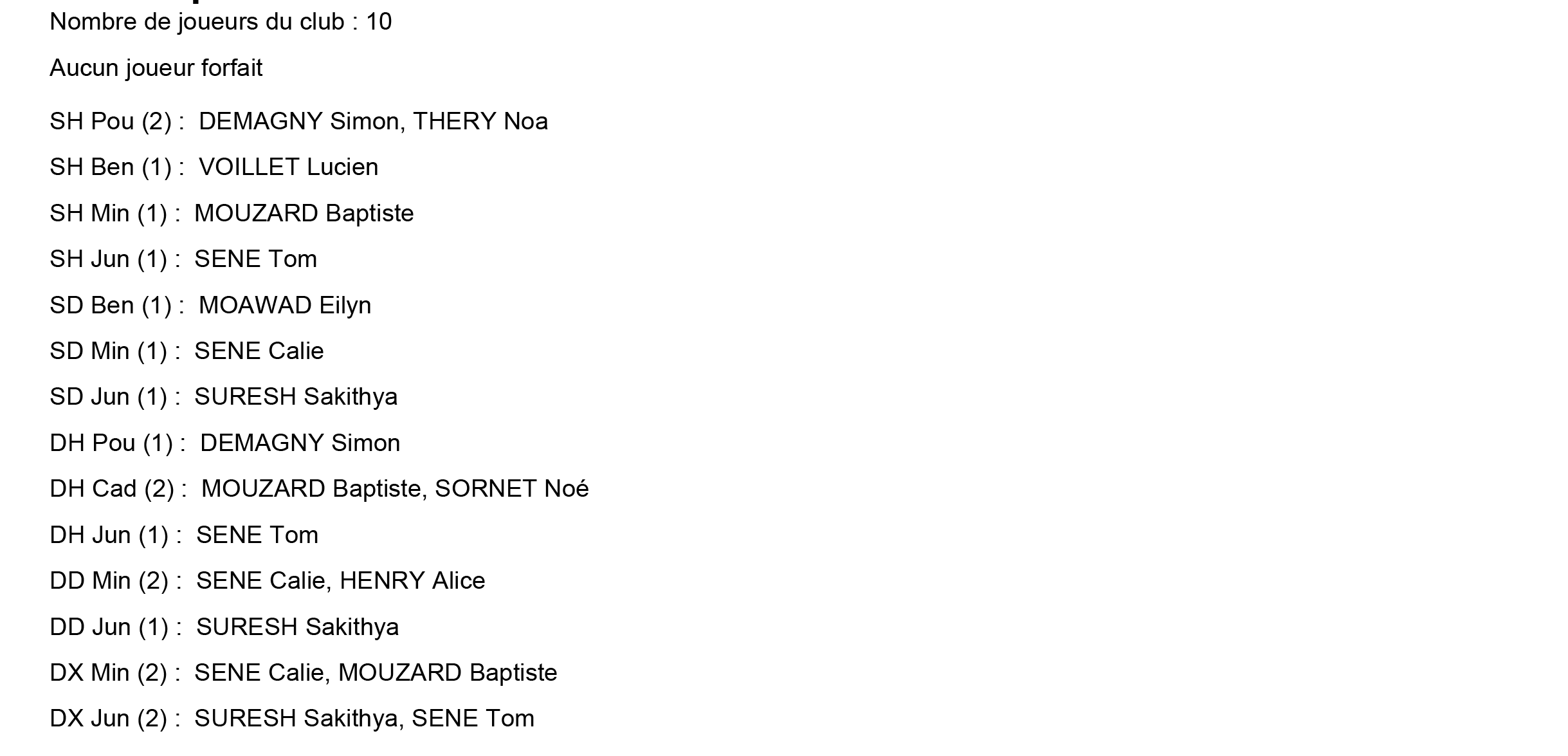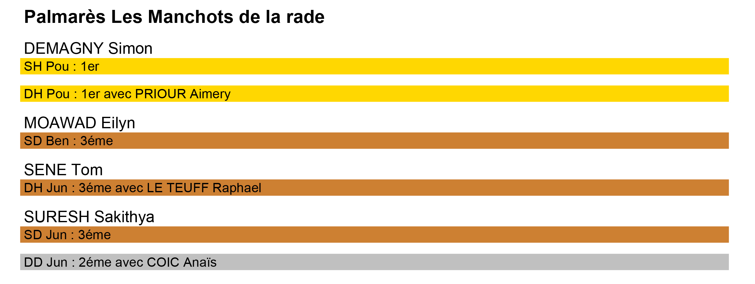 Une médaille d'argent pour Sakithya en Doubles Dames Junior, et trois de bronze pour Sakithya en Simple Dames Juniors, Eylin en Simple Dames Benjamin et Tom en Double Hommes Juniors.